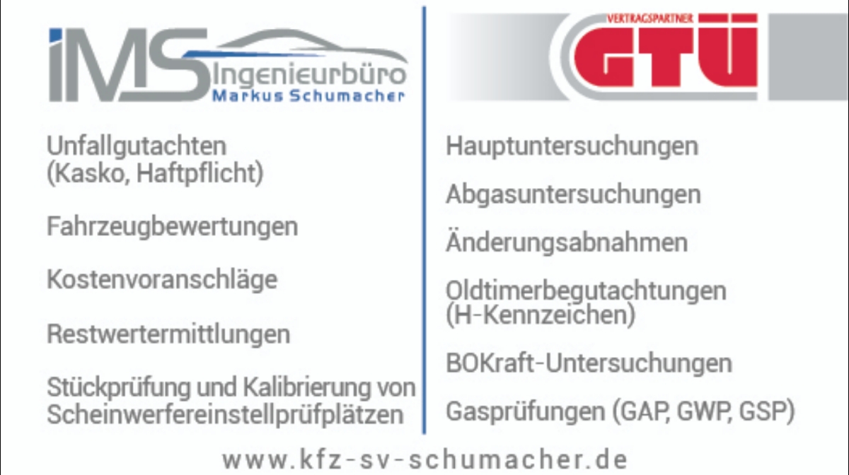 Über Ingenieurbüro Markus Schumacher | GTÜ Vertragspartner in Bornheim | Sachverständiger