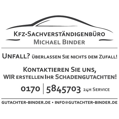 Nachdem das Auto meiner Frau durch einen fremdverursachten Unfall auf der kompletten linken Seite beschädigt wurde, suchten wir im Internet nach einem unabhängigen KFZ- Gutachter um uns rechtlich und auch für die bevorstehende Abwicklung abzusichern. Hierbei sind wir auf das Ingenieurbüro Binder gestoßen und haben sogleich Kontakt aufgenommen. Nach ein paar wenigen Fragen zum Unfall und zum Fahrzeug verblieb Herr Binder mit uns mit der Nachricht ,,30 Minuten“. Nach 30 Minuten war er dann tatsächlich vor Ort und hat sich ein umfassendes Bild vom Fahrzeug gemacht. Darüber hinaus hat er uns einen Anwalt für die Abwicklung empfohlen und die Reparatur in seiner Werkstatt angeboten inklusive bereitgestelltem Ersatzwagen. Wenige Tage später konnten wir das Fahrzeug meiner Frau wieder in Empfang nehmen. Von den Dellen, Kratzern und dem zerstörten Außenspiegel war nichts mehr zu sehen. Wirklich gute Arbeit! Besonders möchte ich den freundlich- familiären Dialog mit dem gesamten Binder - Team betonen. Vielen lieben Dank für die tolle Arbeit und den geleisteten Service. So hatten wir im Unglücksfall wenigstens Glück mit Gutachter und Werkstatt. Ich hoffe nicht, dass wir erneut in diese Situation geraten werden. Doch wenn, dann weiß ich, an wen ich mich vertrauensvoll wenden kann.