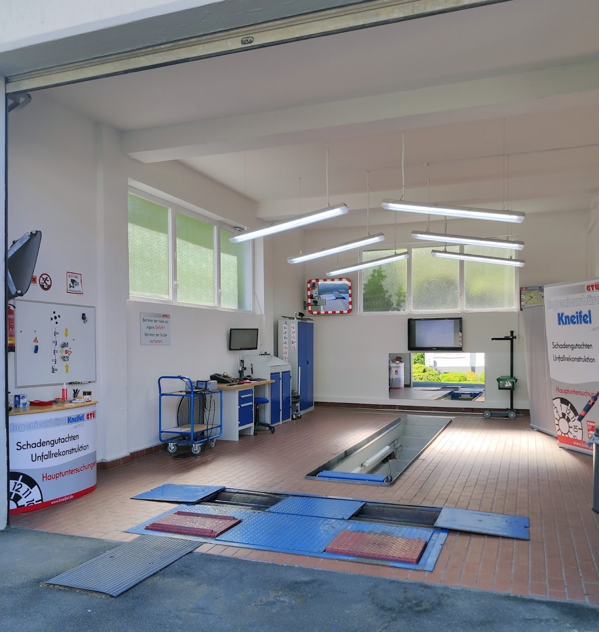 Die Werkstatt ist sehr sauber und gut beleuchtet.