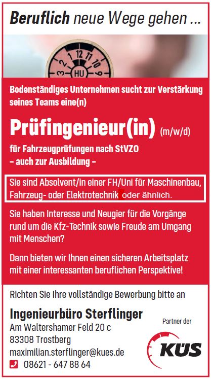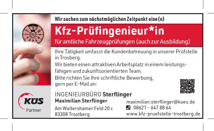 Über KÜS Kfz-Prüfstelle Trostberg, Ingenieurbüro Sterflinger - ohne Terminvereinbarung