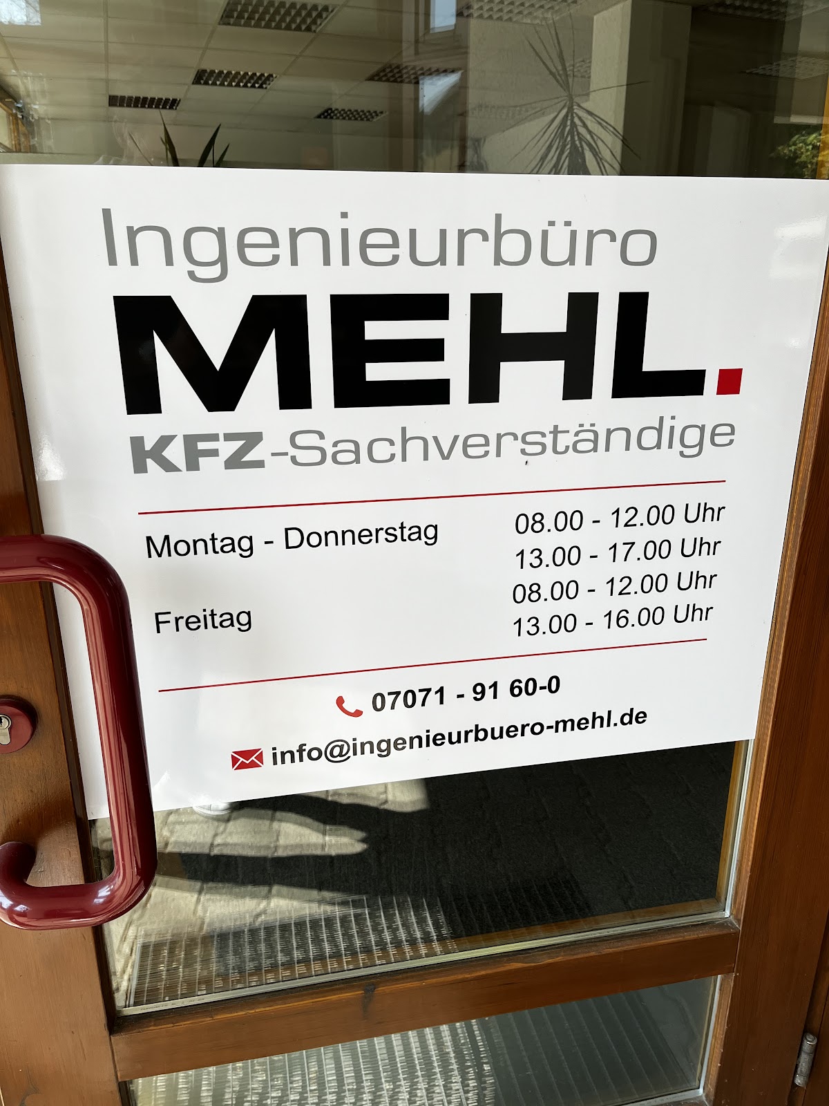 Das Ingenieurbüro Mehl wurde mir von meiner Werkstatt empfohlen. Ich habe super schnell einen Termin bekommen. Die angetroffenen Mitarbeiter und Herr Mehl waren sehr nett.